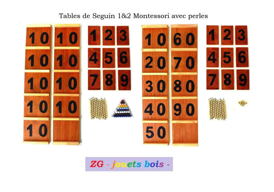 Barres rouges et bleues, chiffres rugueux, Table de Seguin, Boite de fuseaux....