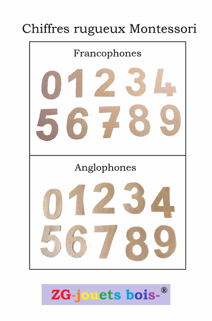 Montessori rough numbers, mathematical materials, cut-outs, sandpaper, sensory discovery, number learning, French craftsmanship