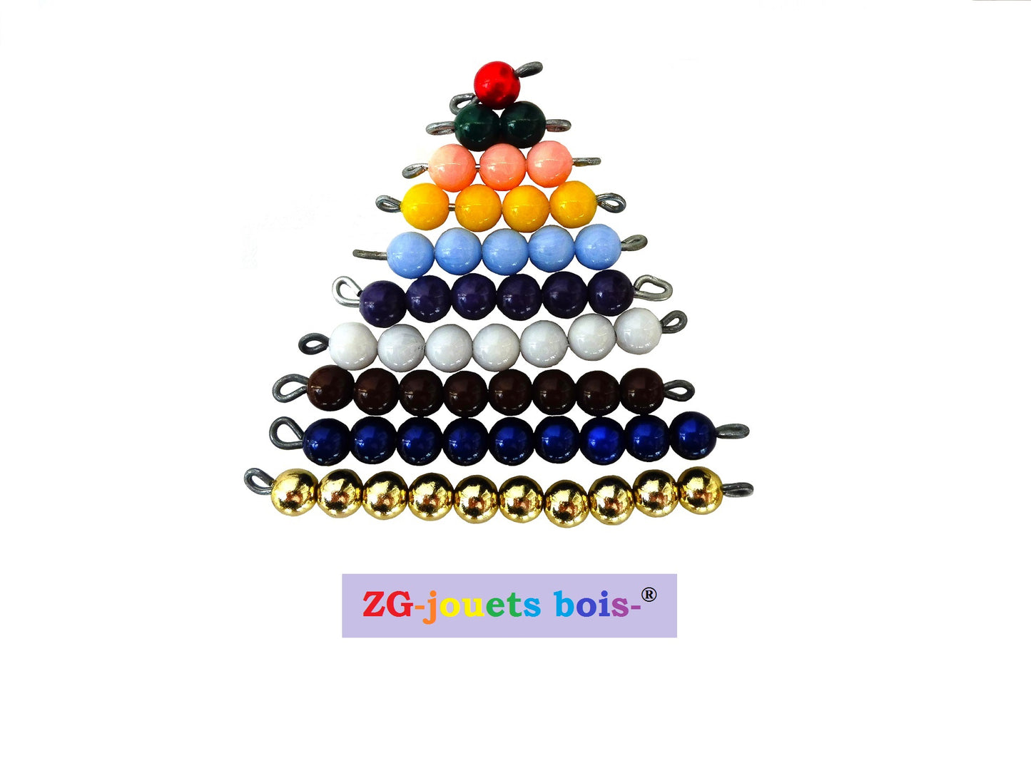 One of the first Montessori Mathematics materials to use with the child so that he learns to count up to 9, while being able to present him with the ten if necessary.