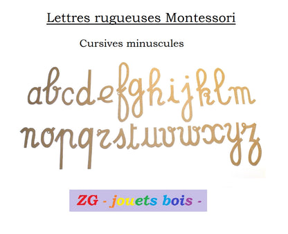 Montessori rough letters, LOWER CURSIVES, in kit or ready to use, color of your choice, storage box, wood, handmade.