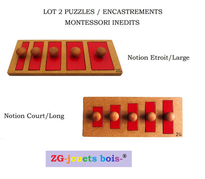 LOT 2 Puzzles / MONTESSORI recesses, short/long, narrow/wide, color of your choice, grip button, wood paint, handmade