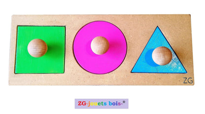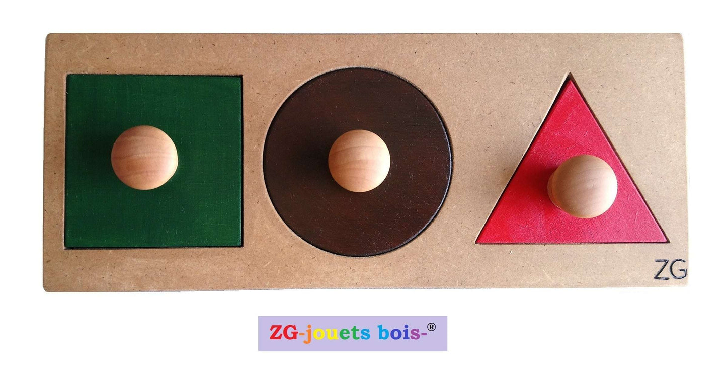 Puzzle 3 Montessori geometric shapes, NIDO interlocking, easy grip, drawing shapes, handcrafted product, colors of your choice