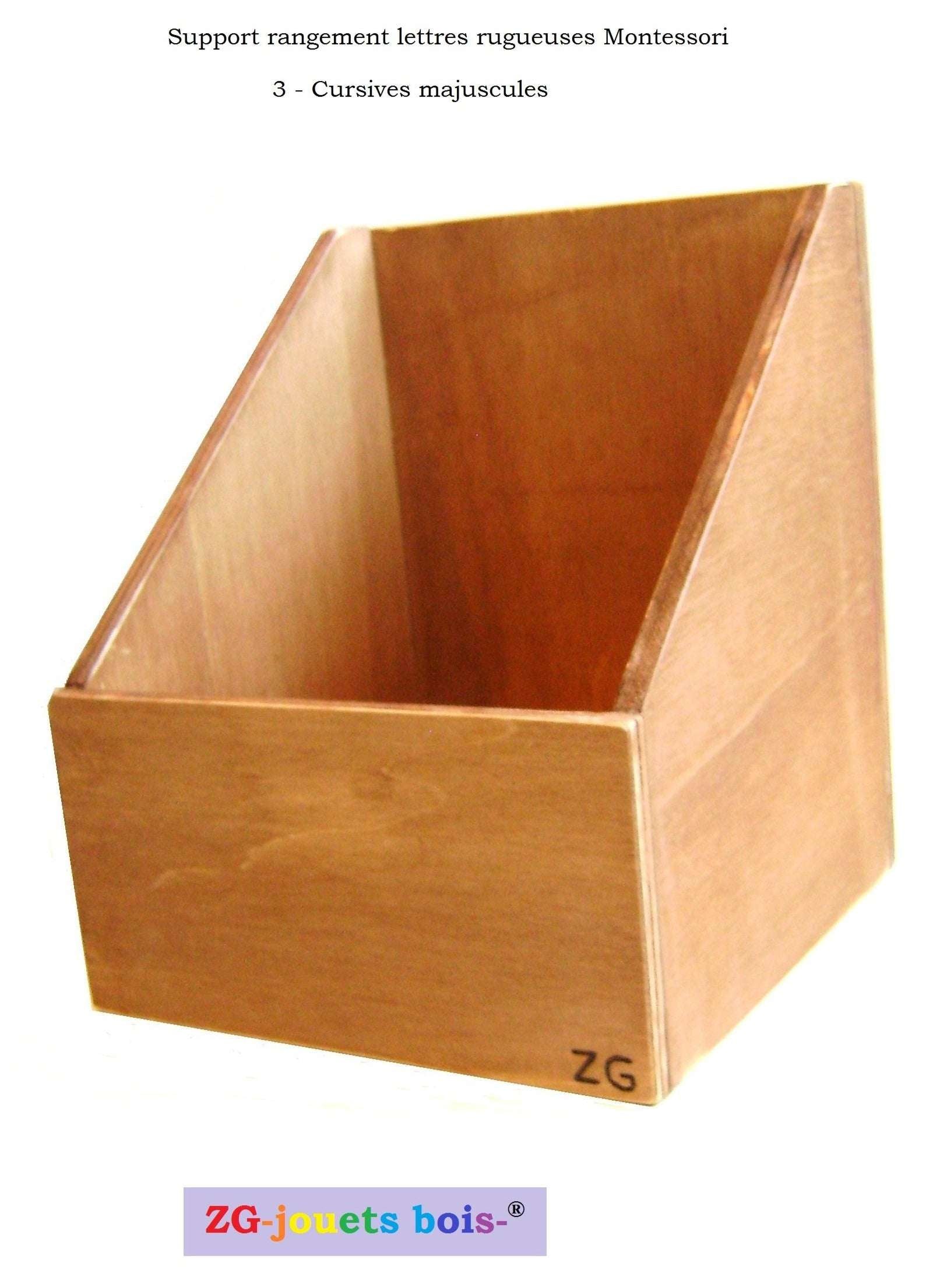 Wooden support, Montessori rough letters storage box, Cursives or Scripts, lowercase or uppercase, size of your choice, handcrafted product