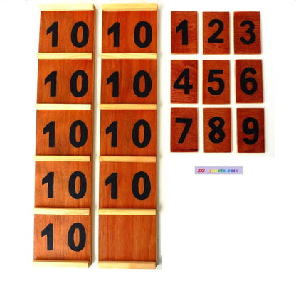 - two tables (plywood) of 460x100x80mm numbered nine times "10" to write the numbers from 11 to 19
