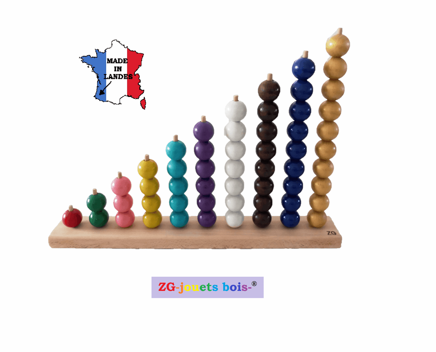 Abaque 3, 5 ou 10 tiges en hêtre aux couleurs Montessori