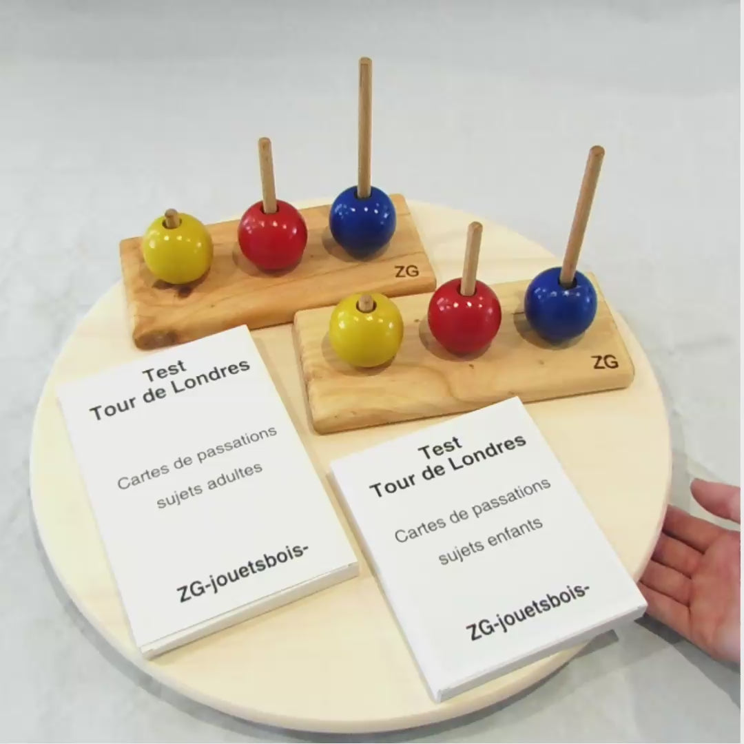 Professeur, étudiant ou professionnel. Utilisé en orthophonie, psychomotricité ou neurologie. Matériel permettant de réaliser le test de la tour de Londres norme Shallice 1982.