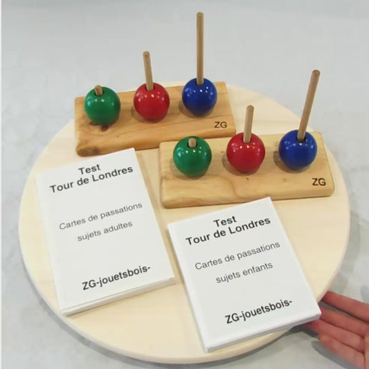 Equipos para evaluaciones y pruebas de neurología, psicomotricidad, logopedia. Torre de Londres ( Shallice y Drexel ), bloques Corsi de 9 o 10 cubos , tarjetas de prueba para sujetos adultos y niños .