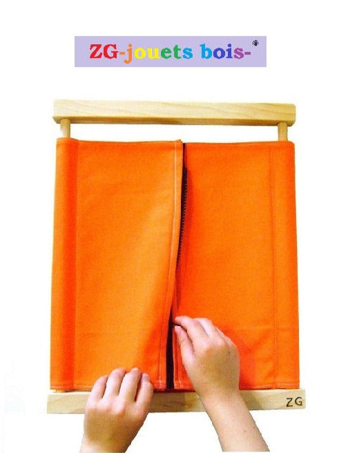Tocador vida práctica pedagogía Montessori, Cremallera/ZIP, separable, madera 100% tejido algodón, autonomía confianza, hecho a mano