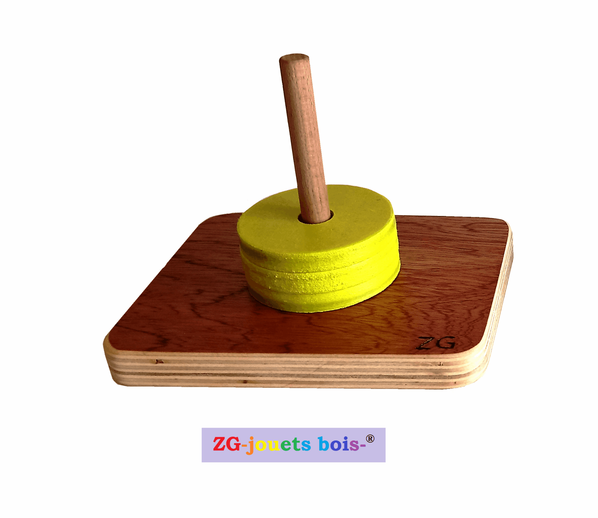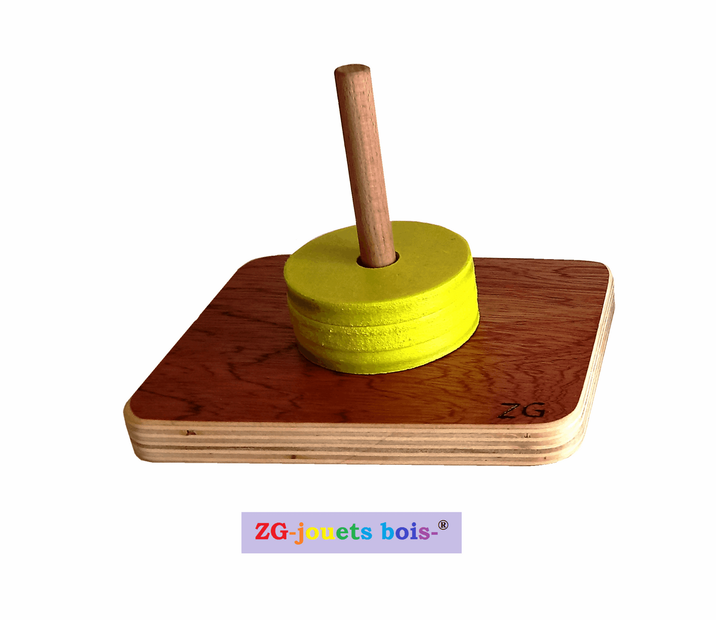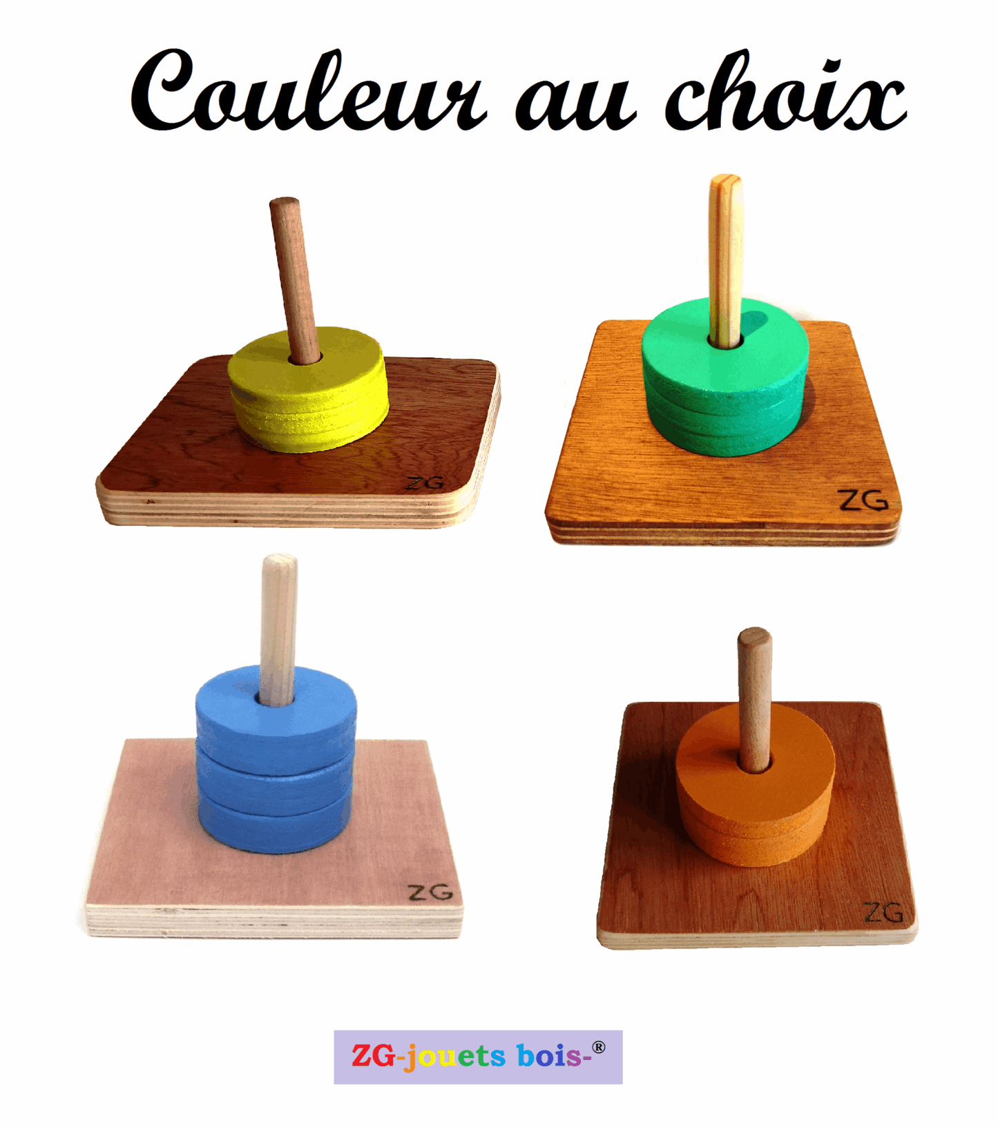 Juego de empotrar, pucks de madera pintada, varilla vertical, juguete educativo Montessori, mismos diámetros, producto artesanal, personalizable.