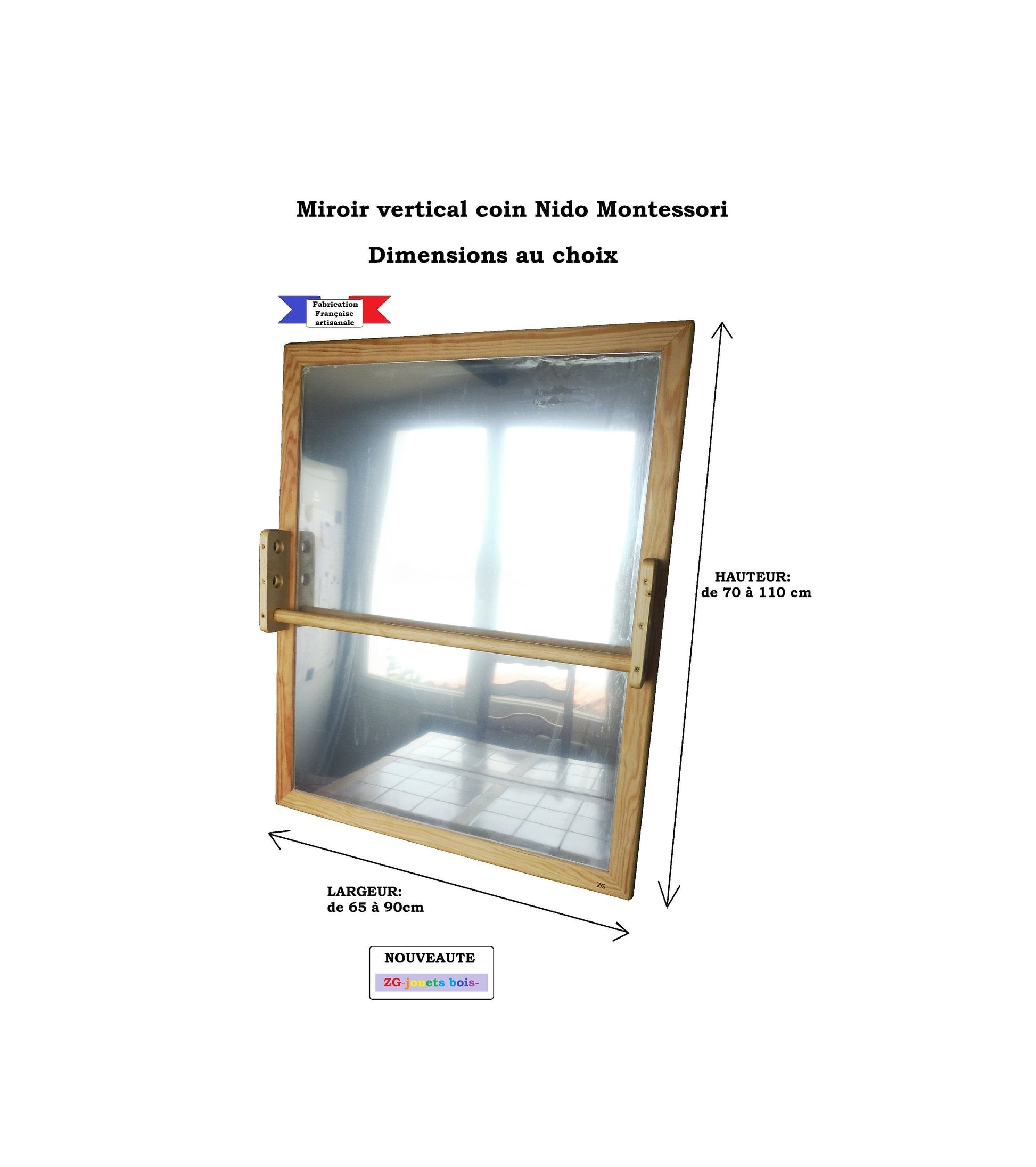 Espejo Vertical Irrompible, Nido Montessori, hecho a medida, barra braquial regulable