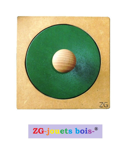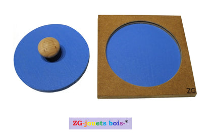 Rompecabezas Montessori / incrustación, juguete educativo de madera, forma única, redondo grande, habilidades motoras / reflexión, color de su elección, producto artesanal