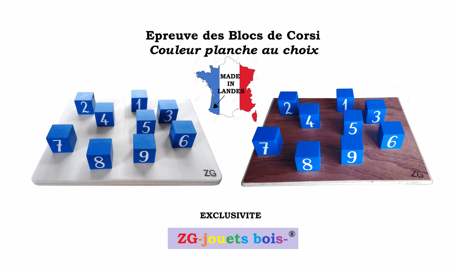 Nous fabriquons aussi les blocs de corsi avec 10 cubes.