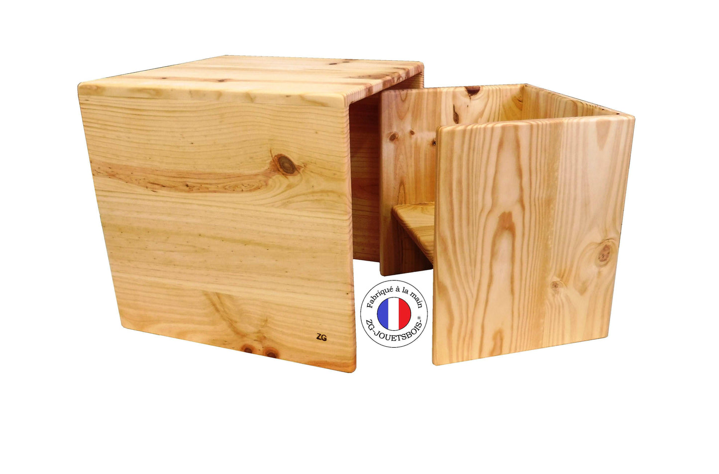 Table + 1 ou 2 chaises cube évolutives, Montessori, 3en 1, deux hauteurs d'assise, mobilier bébé, inscription personnalisable