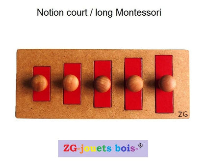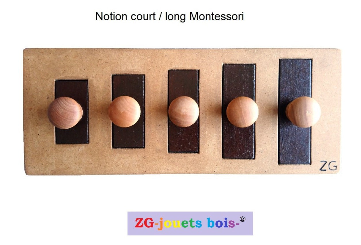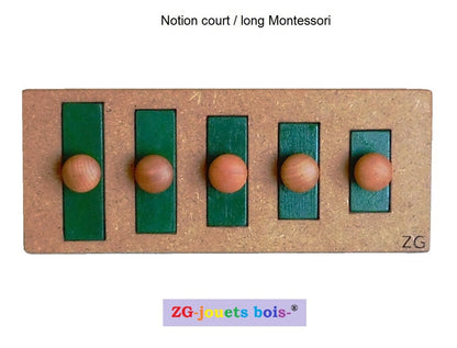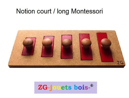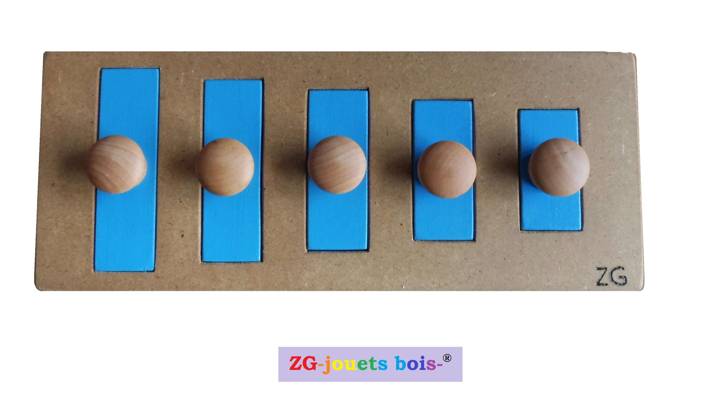 Ils pourront, tout en jouant, appréhender la variation de taille en longueur (court/long) en totale auto-correction. Les boutons en hêtre présentent une taille idéale pour la préhension des petites mains.