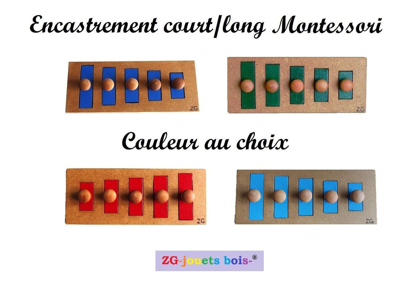 Puzzle court/long Montessori, jeu encastrement NIDO, préhension facile, formes à dessin, produit artisanal, coloris au choix.