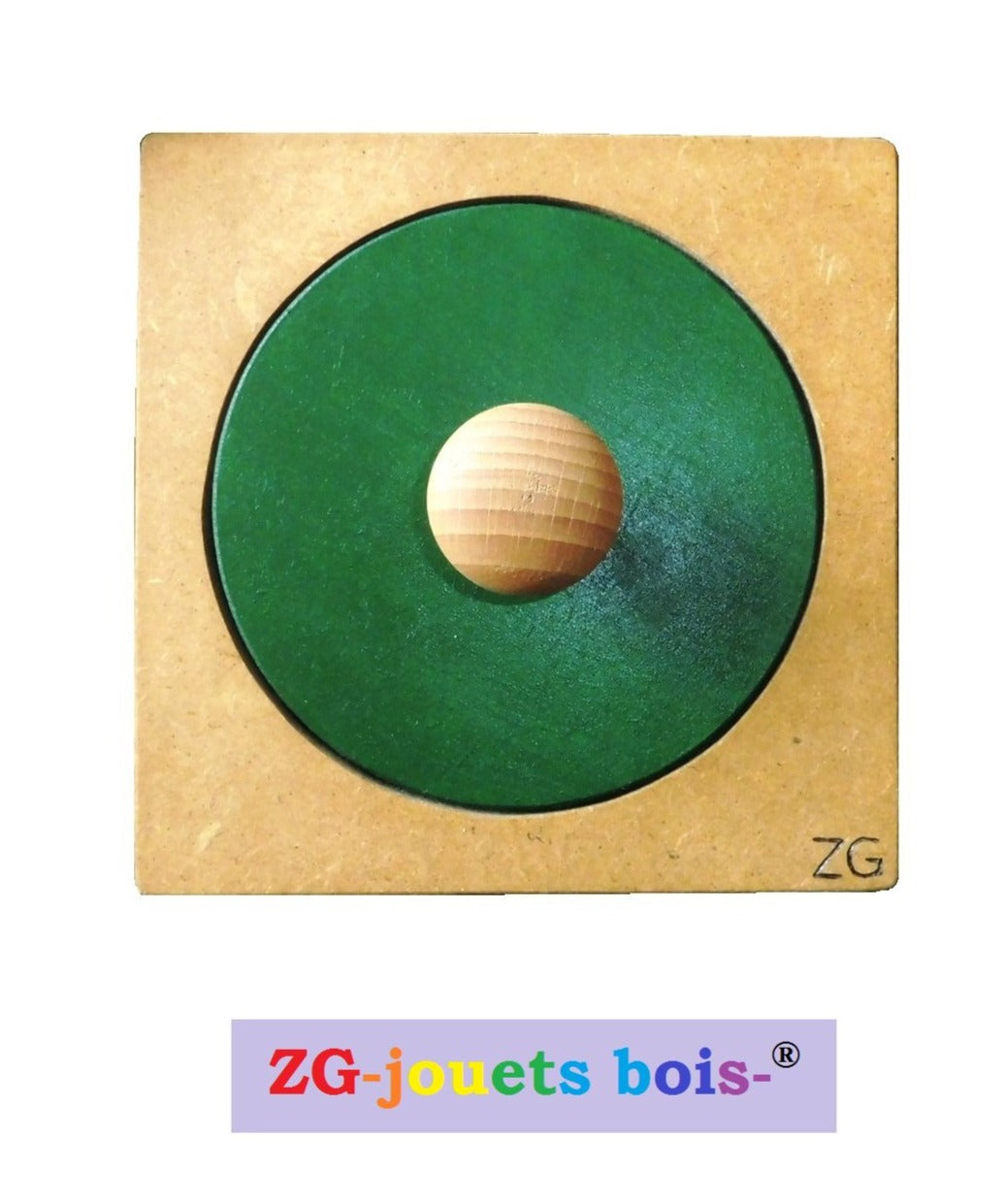 Puzzle / encastrement Montessori, jouet éducatif en bois, forme unique, gros rond, motricité/réflexion, couleur au choix, produit artisanal
