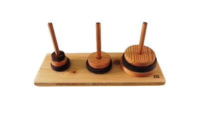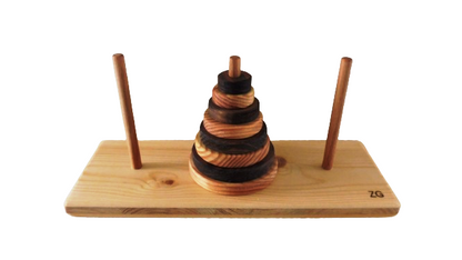 Le but : Déplacer La Tour de Hanoï à 8 disques de la tige de départ à la tige d'arrivée en passant par une tour intermédiaire sur la tige du milieu. Tout ça en un minimum de coups!